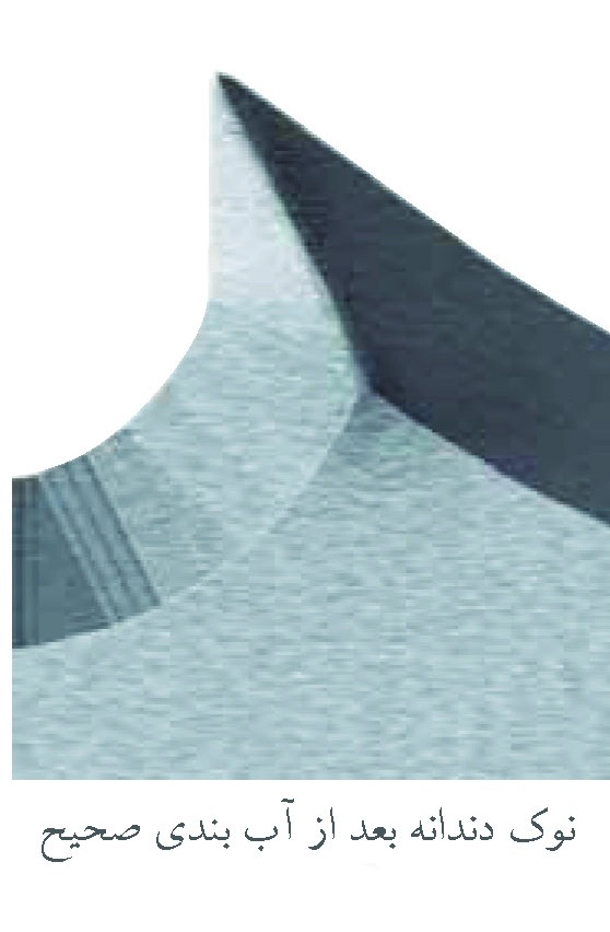 همانطور که در شکل های بالا می بینید دندانه های تیغ اره های نواری بی متال در ابتدای مصرف فوق العاده تیز و برنده می باشند که این موضوع می تواند علیرغم مفید فایده بودن در صورت استفاده ناصحیح باعث از بین رفتن هر چه سریعتر تیغ اره گردد برای اینکه ما از این روند جلوگیری کنیم و نهایت توان تیغ اره را برای برشکاری و صرفه جویی هزینه های جاری به دست بیاوریم باید این تیزی زیاد تا حدودی گرفته شود و نوک دندانه تیغ اره کمی زاویه گرفته و در اصطلاح گرد شود تا بتواند در موقع فشار حاصل از برش توان مقاومتی بالاتری را داشته باشد برای این منظور دو روش وجود دارد که اولی در مورد اجناس نرم و خوش برش مثل فولاد های ساختمانی و آلومینیوم و روش دوم در مورد اجناس سخت مانند آلیاژهای پایه نیکل (اینکونل) فولاد های آلیاژی سخت،فولاد های ابزاری و استنلس استیل می باشد.