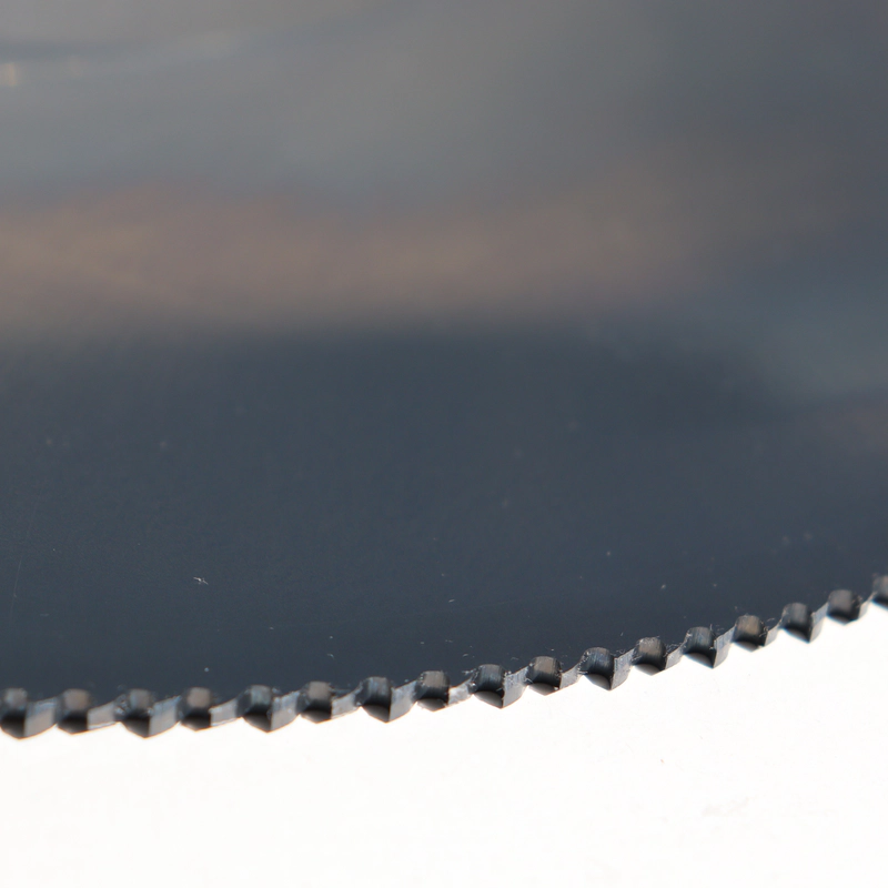 این نوع از تیغ اره ها در دستگاههای دارای مایع خنک کننده (آبصابون) قادرند تمام مقاطع توپر و تو خالی (لوله،پروفیل،گرد های توپر) را به شرط آنکه از گام و تیپ دندانه مناسب استفاده شود برش نمایند. تمام تیغ اره های آبصابونی در ابتدا براق (سفید) هستند که بیشتر برای برش مقاطع آلومینیومی به علت انعطاف بالاتر این نوع تیغه ها استفاده می شوند.برای بالا بردن مقاومت سایشی این تیغه ها عملیات مختلفی انجام می گیرد از جمله اینکه با یک مرحله عملیات حرارتی بیشتر (steam treatment) سطح تیغه سیاه شده و مقاومت سایشی آن به طور قابل توجهی افزایش پیدا می کند همچنین با عملیات PVD می توان پوشش نازکی در حدود 5-3 میکرون از یک یا ترکیب چند فلز سخت روی تیغه ایجاد نموده و سختی آنرا بالا برد.